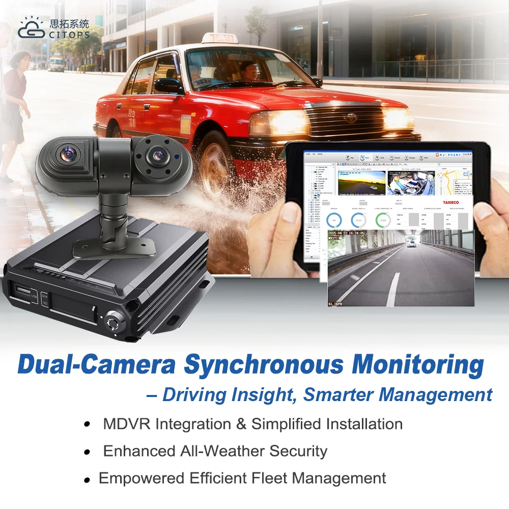Sistema intelligente di registrazione con doppia lente per veicolo 1080P AHD, sistema di registrazione anteriore interno MDVR, fotocamera con visione notturna per monitoraggio taxi, camion e flotte
