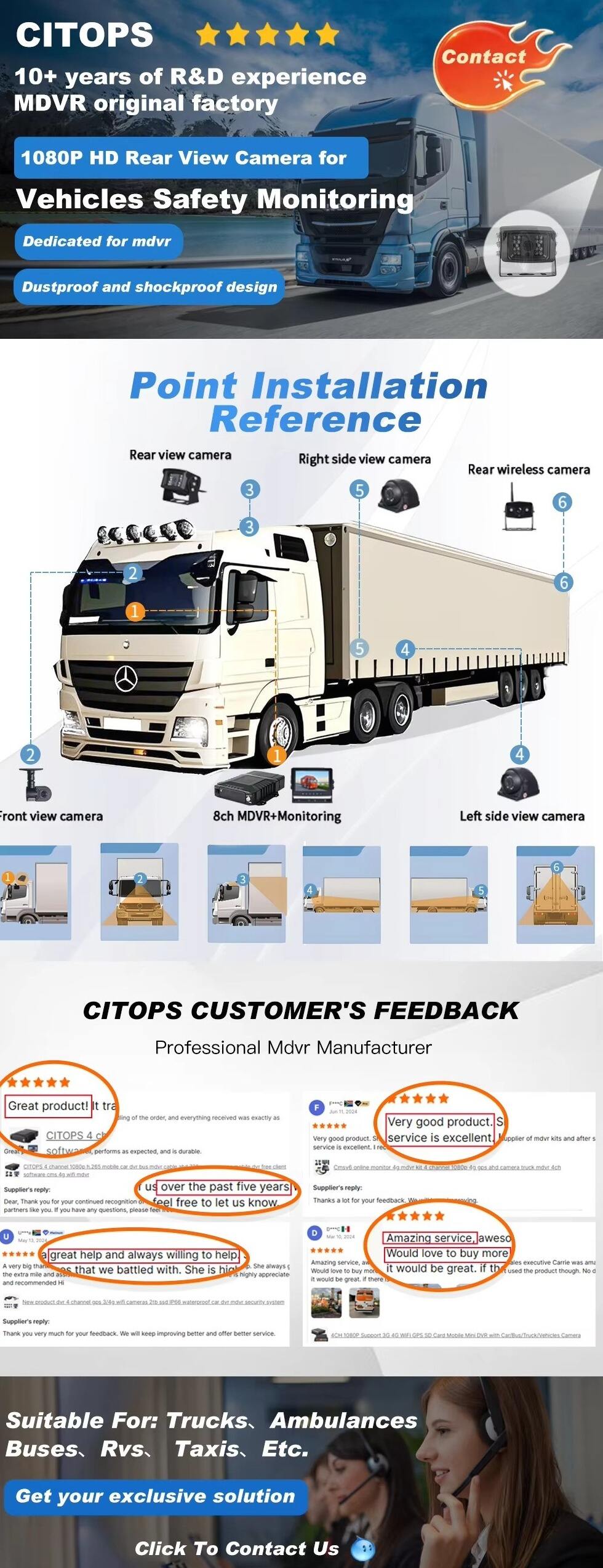 이것 차량 후부 장착 카메라 험난한 환경과 실시간 안전을 위해 제작되었습니다. 트럭, 트레일러 및 플리트 차량용으로 설계됨 ,선명한 1080P 화질, 15미터 적외선 야간 투시 기능, 그리고 견고한 IP68 방수 하우징을 제공합니다. 후진 시나 녹화 시 모두 이 카메라는 사고를 줄이는 데 도움을 주며 신뢰할 수 있는 후방 가시성을 제공합니다.