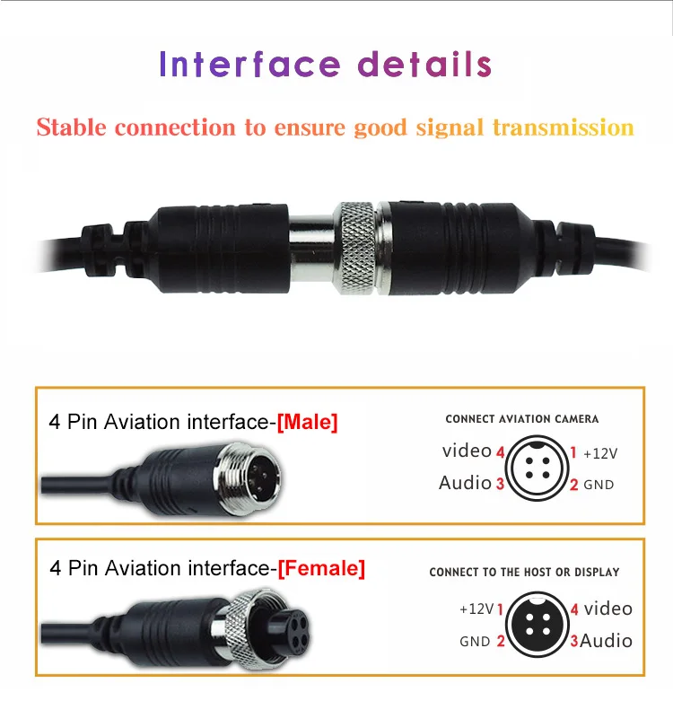 Wysoka Jakość Wodoodporny Ciężarówka Odwracanie Mdvr Monitorowanie Kabel 3M 5M 8M Podwójnie Tarcza 4 Pin Kabel Rozszerzający z Kamerą