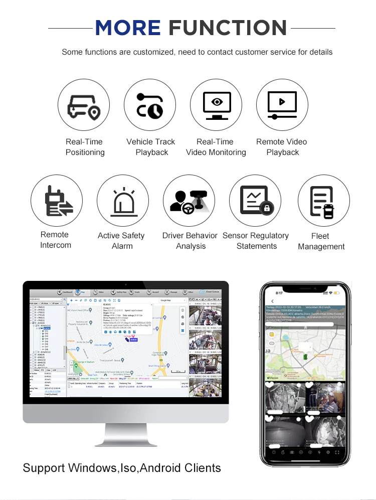 With the built-in G-sensor to detect events, along with ADAS and DMS to ensure the safety of the driver with the AI intelligent features.Utilizes H.265 encoding to maximize storage space and enhance video playback quality.